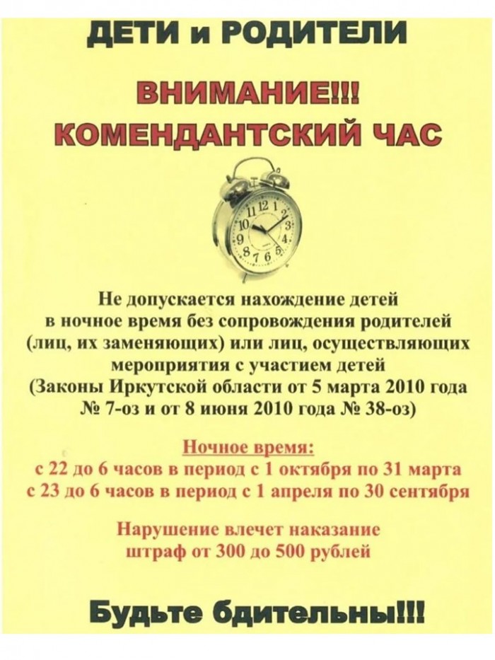 Памятка Комендантский час